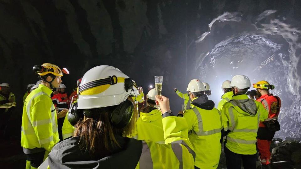 Fest for ferdig utsprenging av berghallar og tunnelar Mandag var det gjennomslagsfest og markering av at det meste av sprengingsarbeidet for berghallane og tunellane på Kongshaugen reinseanlegg er ferdig.